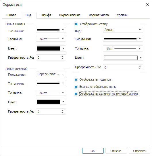 Оси диаграммы | Настройка общих параметров диаграммы | Настройка компонентов диаграммы