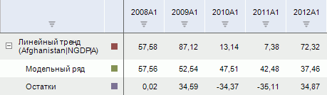 Примечание. При изменении данных исходного ряда вычисляемый ряд «Авто-тренд» автоматически подбирает оптимальный тренд и повторно рассчитывается.