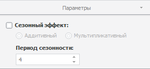 Сезонный эффект. Для учёта при расчёте сезонного эффекта установите флажок «Сезонный эффект». Укажите метод, применяемый для выделения сезонной составляющей исходного ряда: