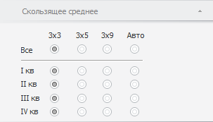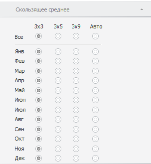 Независимо от календарной динамики вкладка содержит следующие переключатели, определяющие метод расчёта скользящего среднего: