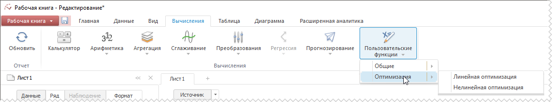 Подключенные пользовательские функции будут отображаться на вкладке ленты «Вычисления».