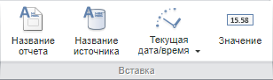 Добавьте текст вручную или с помощью подстановок. Подстановки позволяют быстро вставить в заголовок определенный текст. Для вставки подстановок используйте кнопки в группе «Вставка» на вкладке «Заголовок» ленты инструментов: