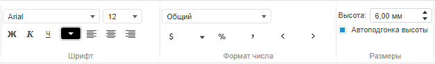 В веб-приложении для настройки оформления заголовка используйте группа команд «Шрифт», «Формат числа», «Размеры» расположенные на вкладке «Заголовок» ленты инструментов: