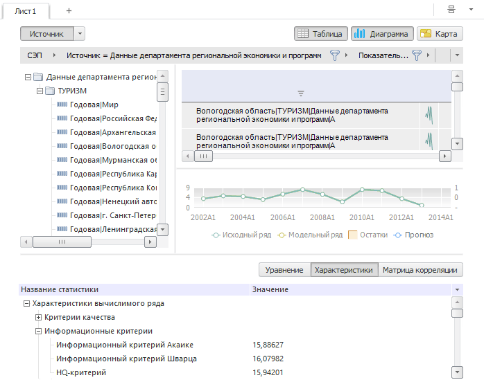 Область представления данных. Предназначена для отображения данных временных рядов в различных формах;
