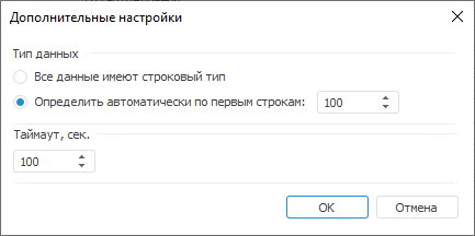 Для определения типа данных импортируемых полей и других параметров используйте окно «Дополнительные настройки».