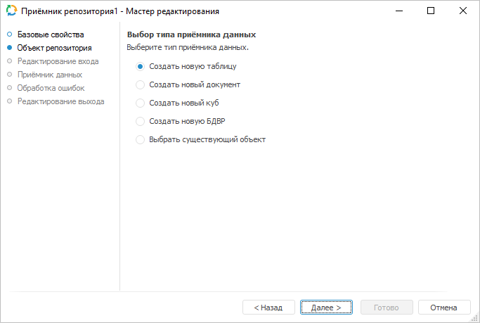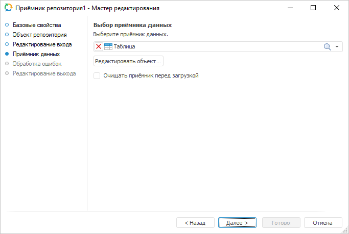 Примечание. Скриншот сделан на примере мастера редактирования приёмника данных «Репозиторий».