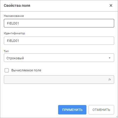 Идентификатор. В соответствующем поле введите новый идентификатор объекта. Идентификатор объекта должен быть уникальным в рамках задачи и начинаться с буквы. Допускается использование букв латинского алфавита, цифр и знака «_»;
