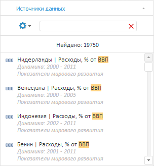 Введите в строку поиска наименование или часть наименования искомого источника данных.