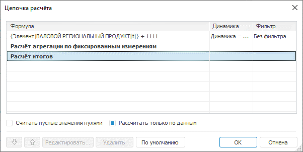 Вывод стандартного окна цепочки расчета для организации порядка расчета моделей.