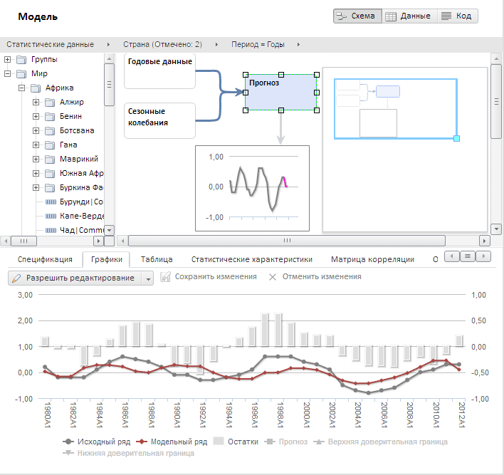 Рабочая область является основной функциональной частью моделирования и прогнозирования и предназначена для работы с моделью: