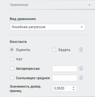 3. Перейдите на вкладку «Уравнение» и задайте базовые параметры уравнения. Набор параметров на вкладке зависит от вида уравнения. Например: