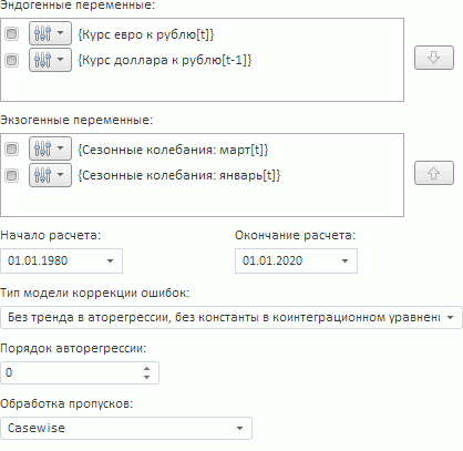 Операции с эндогенными и экзогенными переменными