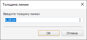 При нажатии на кнопку вызова раскрывающегося списка отобразится список, состоящий из значений толщины линии и соответствующих им изображений линии. Для настройки толщины линии можно воспользоваться представленными в данном списке значениями или установить свое. Для установки пользовательского значения толщины линии выберите пункт списка «Пользовательская». На экране появится следующий диалог: