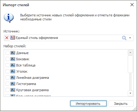 В списке «Набор стилей» будет отображён список доступных стилей. Флажками отметьте стили, которые будут импортированы.