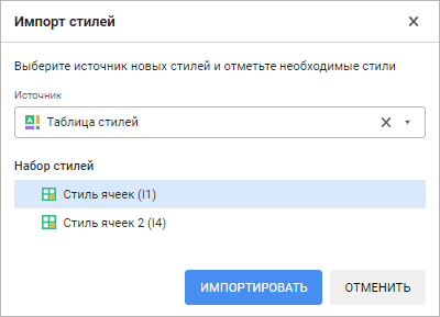 В результате в текущую таблицу стилей будут импортированы отмеченные стили.