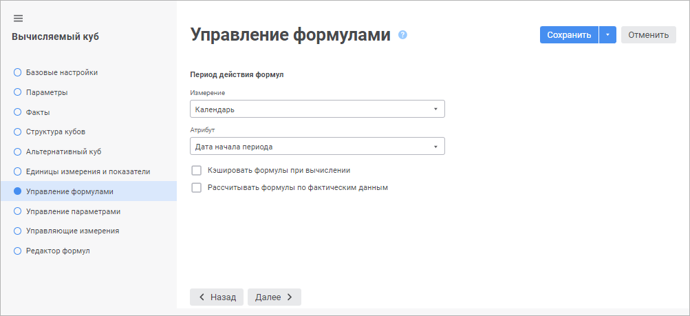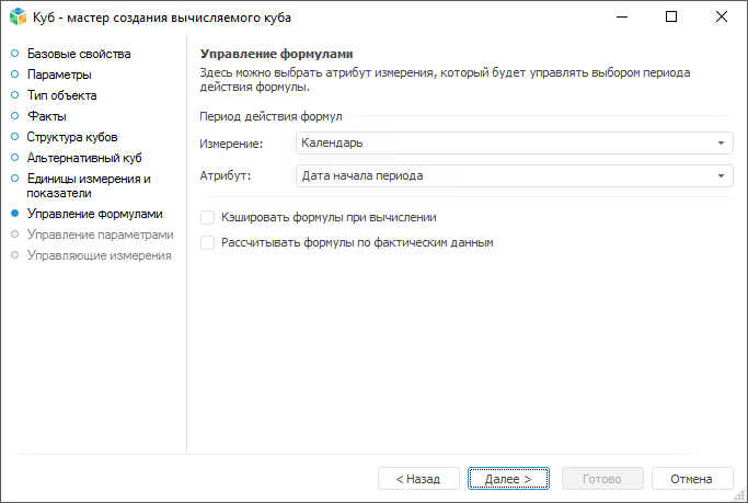 Кэшировать формулы при вычислении. Установите флажок при необходимости кэширования формул при первом вычислении куба. Это позволит быстрее выполнять последующие пересчёты куба;