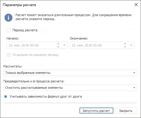 Примечание. Если диалог был вызван из навигатора объектов, то данное поле будет недоступно для редактирования, расчет будет произведен по всем координатам куба (вариант «Все элементы»).