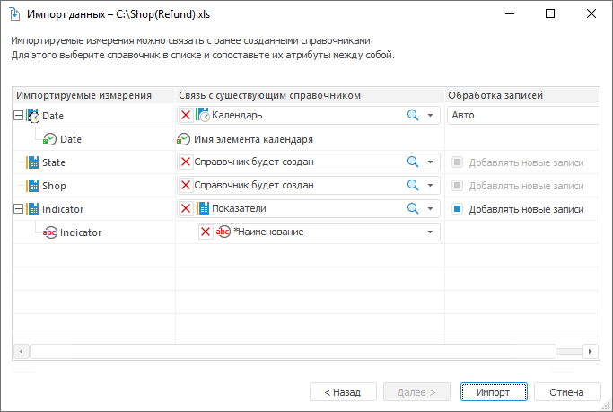 Импорт данных | Особенности импорта в существующие справочники