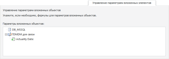 На вкладке «Управление параметрами вложенных элементов» осуществляется настройка передачи значений в параметры объектов, от которых зависит работа справочника НСИ.
