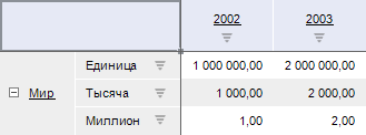 При работе с кубами все данные по показателям указываются в определенных единицах измерения, используемых пользователями. Если предполагается работа с показателями, представленными в различных единицах измерения, то можно настроить автоматический пересчет значений показателей.