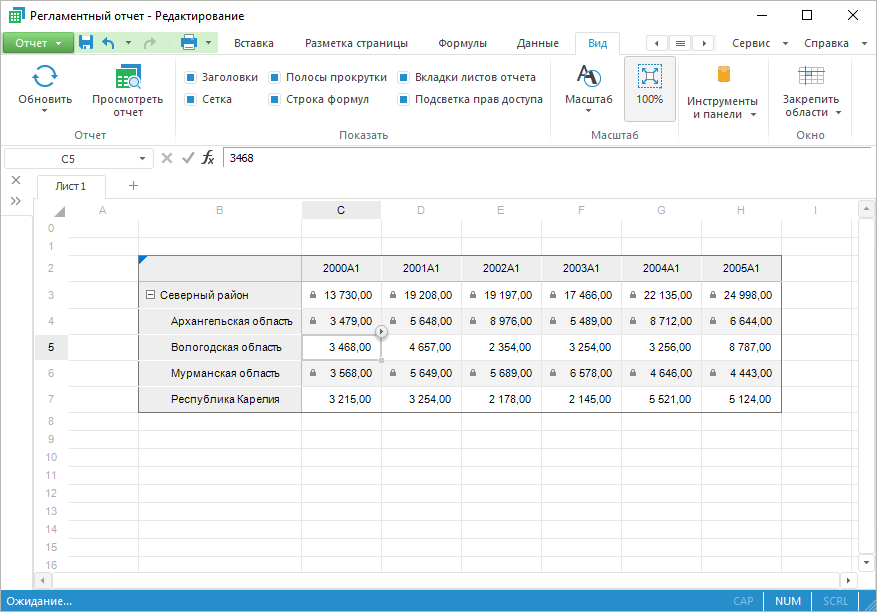 Если пользователю доступно только чтение и/или запрещено изменение данных, то в отчётах пользователь будет видеть данные, но не сможет их редактировать. Если пользователю запрещено чтение и изменение данных, то ячейки будут пустые.
