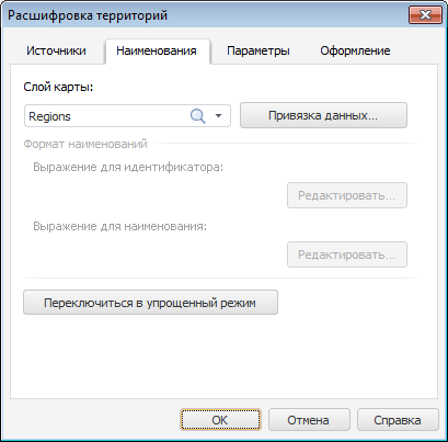 В упрощенном режиме вкладка «Наименования» окна «Расшифровка территорий» выглядит следующим образом: