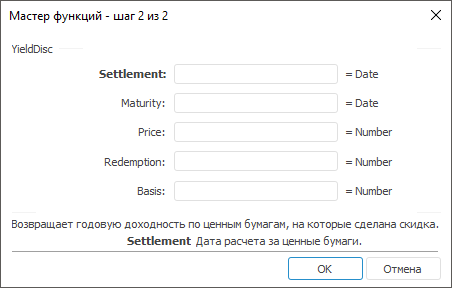 Мастер функций для функции YieldDisc выглядит следующим образом: