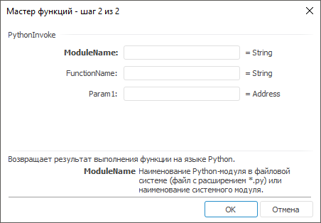 Мастер функций для функции PythonInvoke: