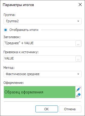 Параметры итогов настраиваются в окне «Параметры итогов»: