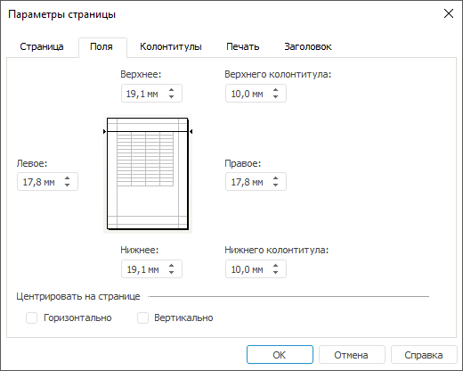 Горизонтально. При установке флажка объекты на листе отчёта будут отцентрированы по горизонтали;
