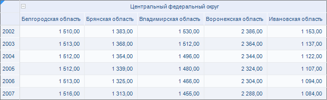 В заголовке области данных может быть использовано несколько уровней иерархии элементов. При таком размещении добавляются дополнительные столбцы под родительские элементы.