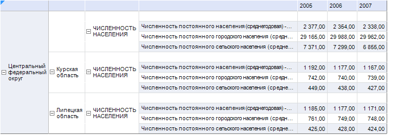 Таким образом, была произведена настройка боковика области данных так, чтобы в нем отображались только листьевые элементы измерения «Территориальные измерения».