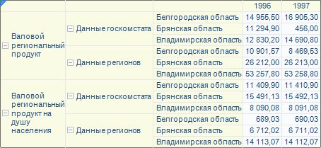 Для построения области данных будет использоваться куб «Социально-экономические показатели», создание которого рассмотрено в разделе «Пример создания куба».