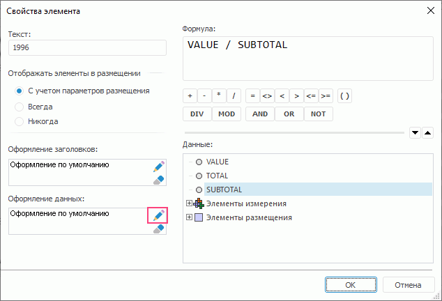 Как настроить вывод значения ячейки области данных в процентах к промежуточному итогу?