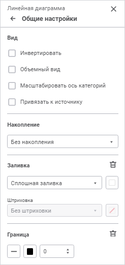 Для настройки вида отображения, типа накопления, заливки фона и границы диаграммы используйте группу параметров «Общие настройки» панели параметров.