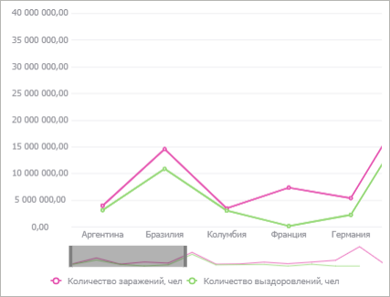 После установки флажка будет отображаться «скроллер» под областью диаграммы: