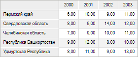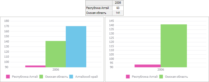 В качестве источника данных для диаграммы используется область, расположенная на листе отчёта:
