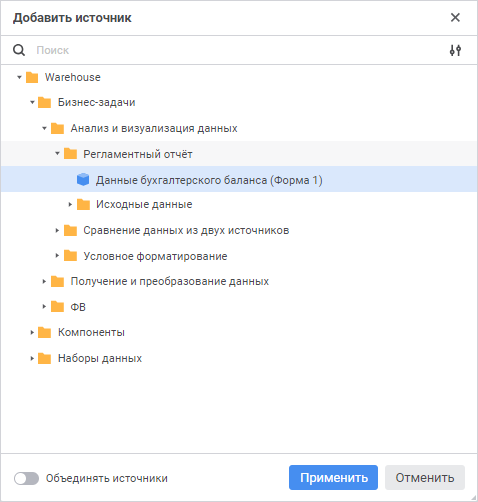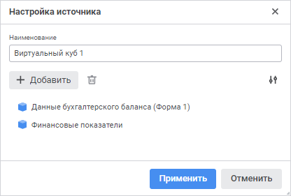 Примечание. Кнопка «Применить» доступна, если источник данных состоит из двух и более кубов.