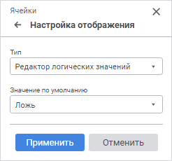 Значение по умолчанию. Выберите значение по умолчанию из раскрывающегося списка «Ложь» и «Истина». Если значение не задано, то по умолчанию в поле будет отображаться значение «Ложь».