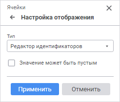 Значение может быть пустым. По умолчанию флажок снят. При установленном флажке значение идентификатора может быть пустым.