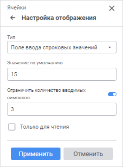 Для настройки редактора ячейки используйте панель «Настройка отображения».