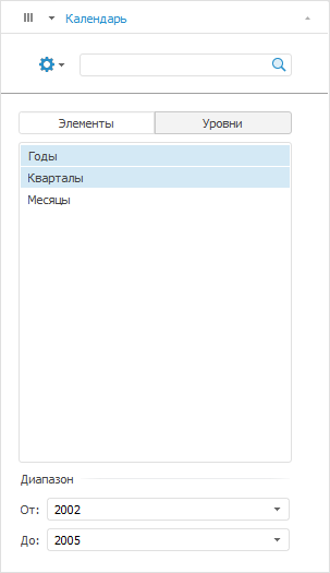 Уровни, доступные для выбора, берутся из календарного справочника. Если для календарного измерения была применена альтернативная иерархия, то список уровней будет сформирован на основании её уровней: