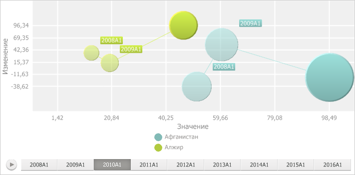 Для отображения следов пузырьков установите флажок «Следы предыдущих значений пузырьков», для скрытия - снимите.