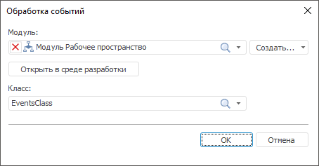 Для настройки и редактирования событий в среде разработки нажмите кнопку «Открыть в среде разработки».