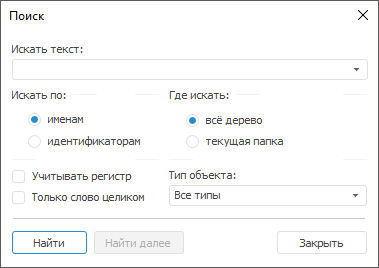 После выполнения одного из действий будет открыто окно «Поиск»: