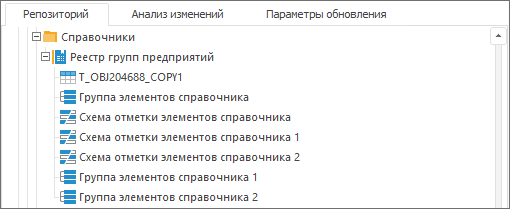 как дочерние элементы справочника, если для добавленных в обновление справочников (в том числе, справочников НСИ) были настроены схемы отметки;