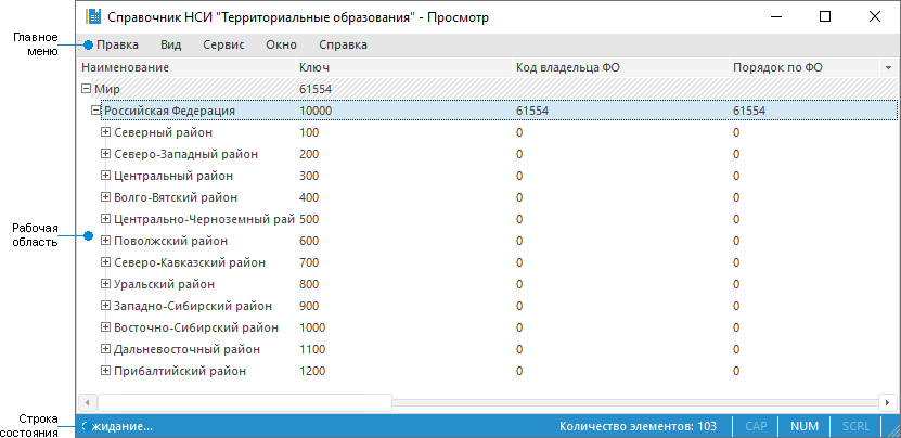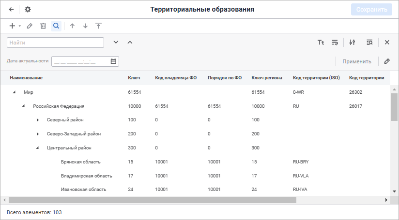 Примечание. При открытии справочника отображаются только первые 100 элементов, остальные элементы загружаются последовательно в режиме реального времени.