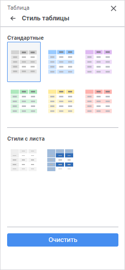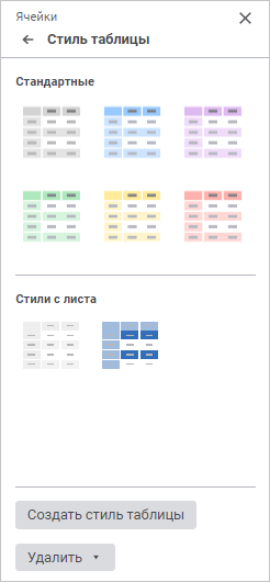 Примечание. Стили с листа отображаются в группе параметров «Стиль таблицы», если применен хотя бы один стиль оформления.