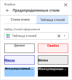 Предопределённые стили. Позволяет применить стандартные стили ячеек или стили из подключенной таблицы стилей.