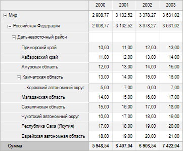 Примечание. Если общий итог совпадает с промежуточным итогом по иерархии/уровням, то рекомендуется отключить отображение общего итога во избежание дублирования информации.